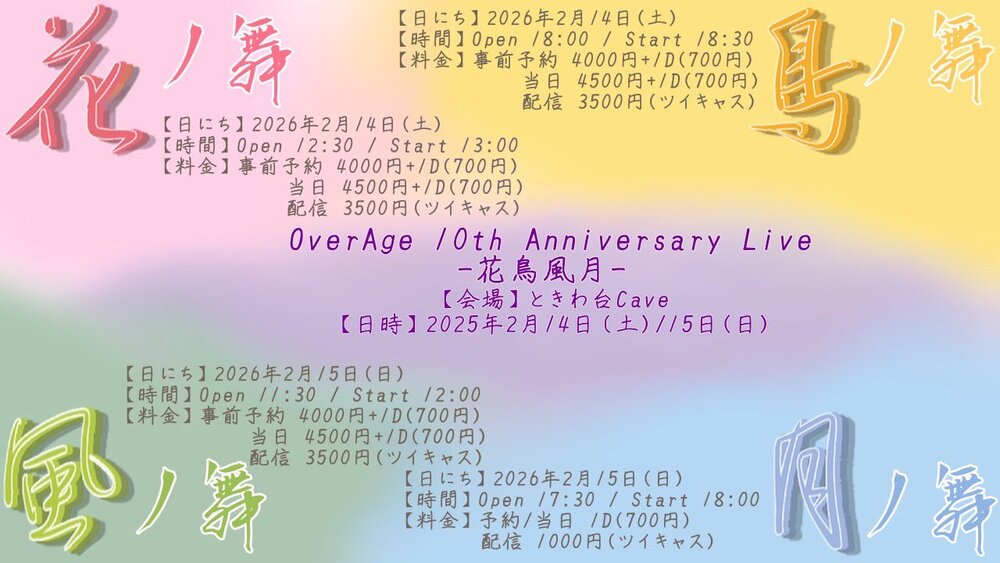 OverAge 10th.AnniversaryLive『花鳥風月』 〜鳥ノ舞〜【東京都】
